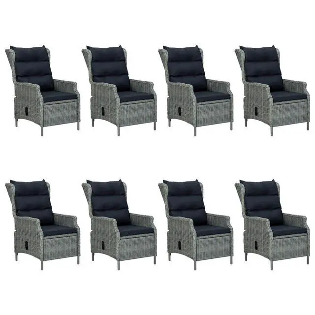 This 9-piece outdoor dining set perfectly mixes contemporary style with functional comfort, making it an ideal choice for gatherings or outdoor dining. The light grey poly rattan finish adds elegance while blending seamlessly with outdoor areas, ensuring durability in the face of tough weather.
