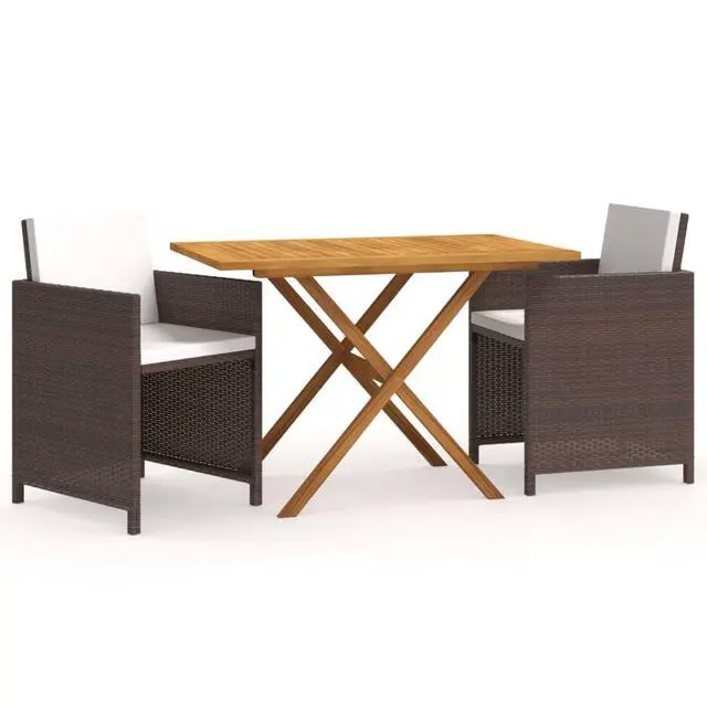 This 3 Piece Garden Dining Set brings together elegance and practicality, tailored for two people to comfortably savor outdoor meals. Made with solid acacia wood and weather-resistant PE rattan, it doesnt just look good but also promises durability, making it a great pick for summer hangouts or intimate dinners on your balcony.