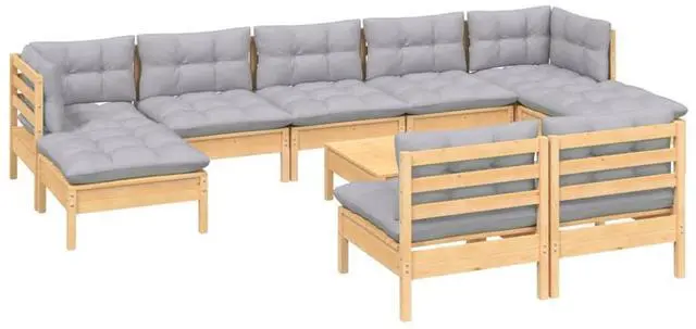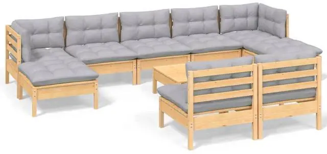 This 10-Piece Garden Lounge Set creates a lovely atmosphere for outdoor relaxation, offering plenty of space for gatherings with friends and family. Its modern design brightens up your outdoor area, while the solid pine wood and weather-resistant fabric ensure its durable and comfy all season long.
