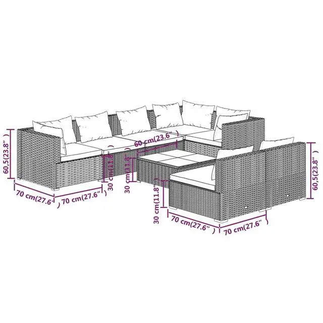 Delivery Contains: 1 x Table, 3 x Corner sofa, 4 x Middle sofa, 7 x Seat cushion, 10 x Back pillow