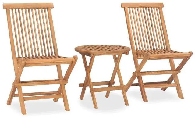 This 3-Piece Folding Outdoor Dining Set is designed for those who value style and practicality outdoors. With a mix of traditional craftsmanship and modern convenience, it includes a round table and two foldable chairs made of solid teak wood, giving a warm, natural look perfect for any garden or patio. The smooth texture and warm hue of the teak create a welcoming environment, ideal for relaxed meals or casual get-togethers with friends and family.