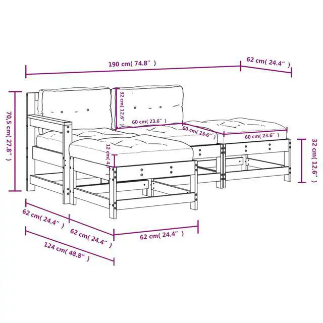 This 4 Piece Garden Lounge Set with Cushions is all about comfort and style, making it a top pick for outdoor spaces. Built with solid pine wood and cushioned seat backs, it gives you room to arrange it exactly how you want while showing off your garden, terrace, or patio's natural beauty. The rustic look of this lounge set fits right in anywhere, creating a warm and inviting feel for family hangouts or casual meet-ups.