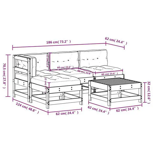 This lovely 5 Piece Garden Lounge Set is a top pick for combining comfort and style, perfect for enhancing your outdoor spots with a rustic charm and practicality. Made from solid pine wood, it boasts a natural finish that fits right into any garden, terrace, or patio, creating a welcoming space for chilling out or socializing.