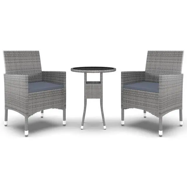 This 3 Piece Garden Dining Set brings a modern look to your outdoor space, perfect for small get-togethers or easy meals in the garden or patio. The mix of gray Poly Rattan and tempered glass gives it a stylish vibe, making it the star of your outdoor lounging and dining.