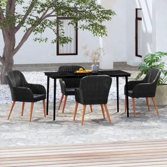 This 5-piece garden dining set makes your outdoor dining experience stylish and functional. With a contemporary look, it's a great match for any patio, balcony, or garden. It features a rectangular table and four comfy chairs, perfect for family meals or hosting guests, all while looking smart in its black finish.