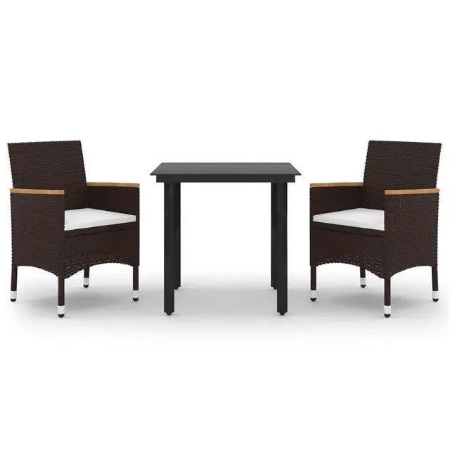 This 3 Piece Garden Dining Set is the perfect mix of style and utility for outdoor spaces, offering a comfy dining experience for up to two people. Its sleek, modern look features a strong powder-coated steel frame combined with stylish synthetic rattan, making it a standout piece for your terrace or garden.