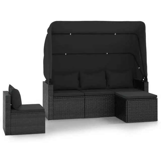 This 4 Piece Garden Sofa Set gives you comfort and style, making it a great choice for gatherings on balconies or patios. With its snazzy black Poly Rattan finish, it's not just good-looking but also practical, offering roomy seating for up to 6 people, ideal for entertaining or relaxing with family outdoors.