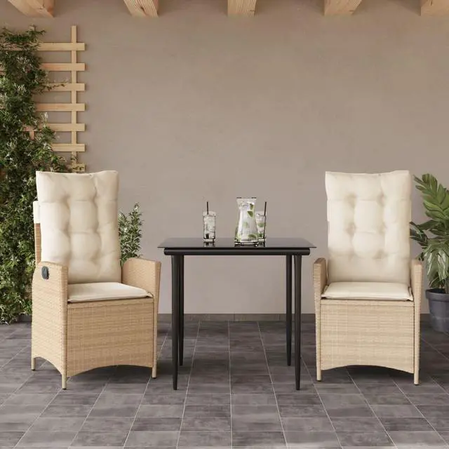 This garden dining set, featuring two recliners and a table, is all about elegance and practicality, easily upgrading any outdoor space. With its modern look and multi-purpose use, it's perfect for outdoor meals or just chilling, making it a great fit for gardens, balconies, or patios, where you can relax and enjoy the fresh air.