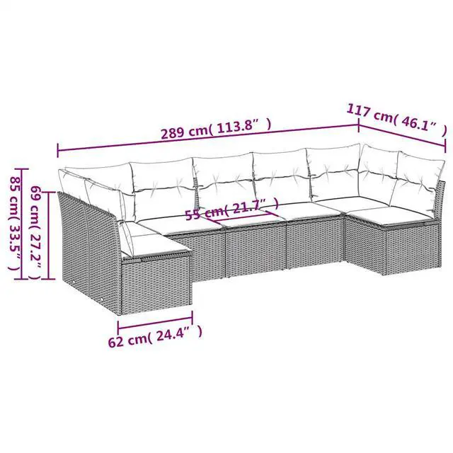 Delivery Contains: 2 x Corner seat, 5 x Center seat, 9 x Back cushion, 7 x Seat cushion with removable and washable cover