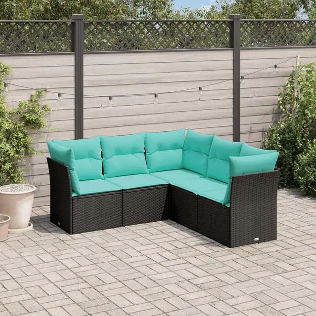 This 5-piece modular garden sofa set is all about taking your outdoor lounging to the next level, offering loads of seating space without losing style. With a smart black finish and blue cushions, its a fantastic centerpiece for balconies, patios, or gardens, perfect for chillin' and chatting with friends.