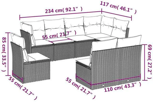 Spacious Seating: With the ability to fit up to 8 people, this sofa set is perfect for hosting friends or simply chilling outdoors with family. Everyone can kick back in comfort.