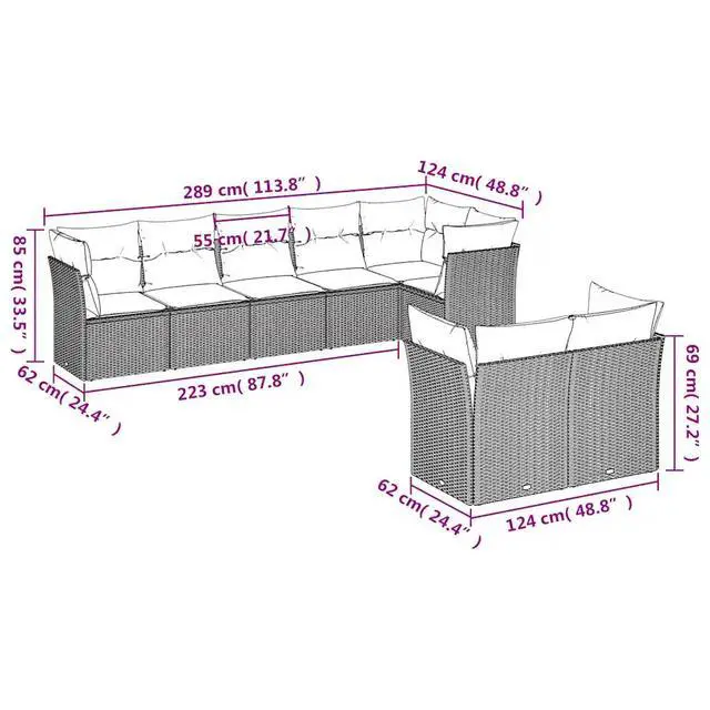 Delivery Contains: 3 x Centre seat, 5 x Corner seat, 8 x Cushions with removable and washable covers, 13 x Back cushion