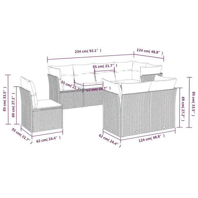 Delivery Contains: 3 x Centre seat, 5 x Corner seat, 8 x Seat cushion, 13 x Back cushion