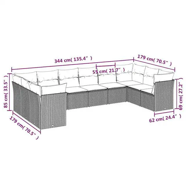 This 10-piece modular garden sofa set brings together sleek design and practicality, making it a great addition to any patio, backyard, or balcony. With a stylish mix of black and blue, this outdoor sofa set creates a comfy spot for gatherings, chats, or just kicking back.