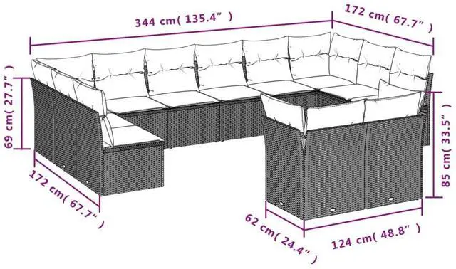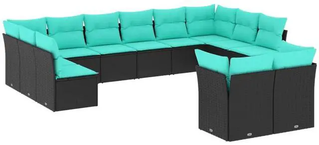 This fab 12 Piece Garden Sofa Set is made to turn your outdoor area into a chill, stylish spot. Its built from tough Poly Rattan and strong powder-coated steel, giving you a nice mix of elegance and practicality, perfect for fancy outdoor parties or laid-back family hangouts.