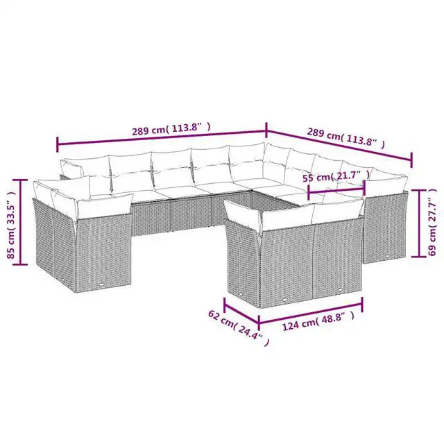 Delivery Contains: 6 Centre seats, 7 Corner seats, 13 Seat cushions, 20 Back cushions