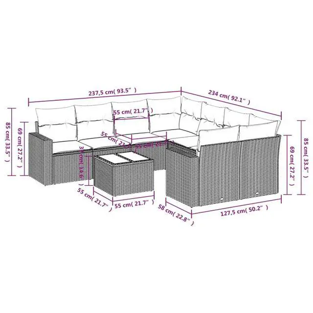 This 9-piece modular garden sofa set is all about style and comfort. It's perfect for kicking back in your garden or on your terrace. The black poly rattan paired with cream cushions brings a chic vibe to your outdoor spaces, making it a great spot for catch-ups with friends or a laid-back afternoon with family.