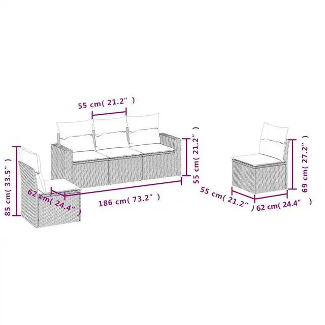 Delivery Contains: 2 x Corner seat, 3 x Center seat, 5 x Back cushion, 5 x Seat cushion with removable and washable cover