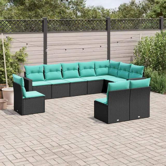This 10-piece outdoor garden sofa set mixes function with modern styleit's a perfect fit for your patio, balcony, or garden. With its sleek black and blue color scheme, it gives you plenty of room for relaxing and entertaining while lifting the vibe of any outdoor spot, ensuring memorable hangouts full of comfort and style.