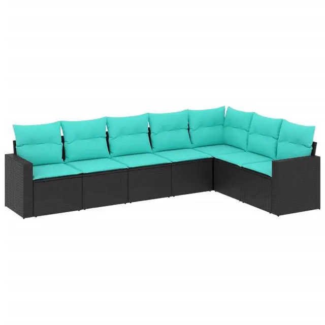 Stylish Aesthetics: With a contemporary vibe and a stylish black and blue design, this sofa set brightens up any outdoor area. Its sleek lines and woven texture add a touch of sophistication to your balcony or garden.