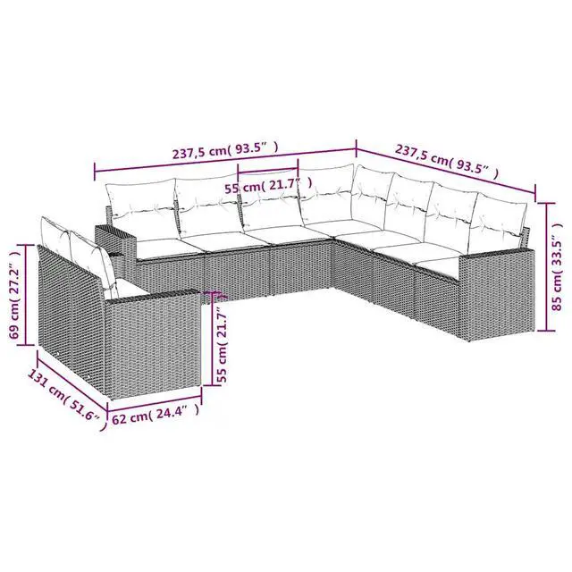 Delivery Contains: 4 Corner seats with wide armrest, 1 Corner seat, 4 Center seats, 10 Back cushions, 9 Seat cushions