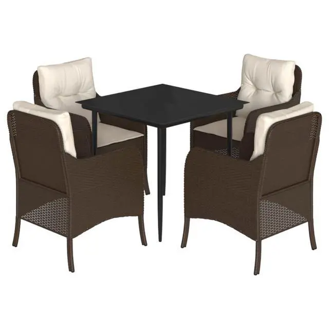 This 5-Piece Garden Dining Set changes how you do outdoor dining with its smart yet practical design, perfect for both casual and fancy get-togethers. Made with top-notch poly rattan and a powder-coated steel frame, the set features a chic square table and four comfy chairs, each with soft, removable cushions that enhance relaxation and let you enjoy meals outdoors longer.