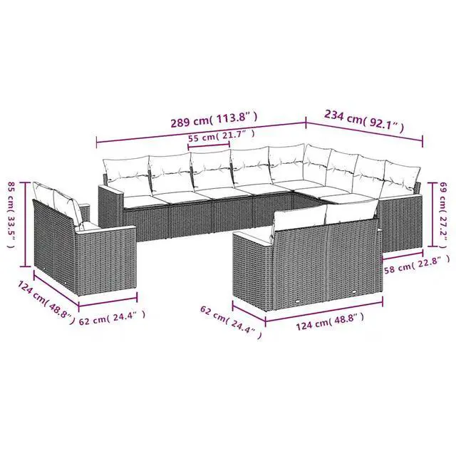 Spacious Seating: With a capacity to accommodate up to 12 people, this patio set is perfect for social gatherings and family events, allowing everyone to relax together in comfort. The generous dimensions of each seat ensure that you and your guests can enjoy lounging without feeling cramped.