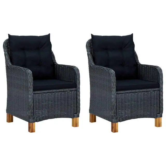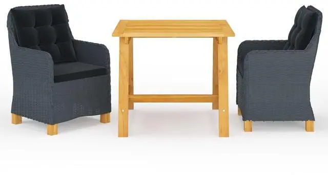 The dinner table is made of solid acacia wood with an oil finish, which makes it stable, durable and easy to maintain. The outdoor chair, featuring a powder-coated steel frame covered with round PE rattan, is sturdy and easy to clean. The thickly padded cushions add extra comfort in your lounging time. The cushion cover is equipped with a zip, removable and washable. Additionally, the solid acacia wood legs add to its sturdiness and stableness. These patio chairs are easy to move with its lightweight construction.