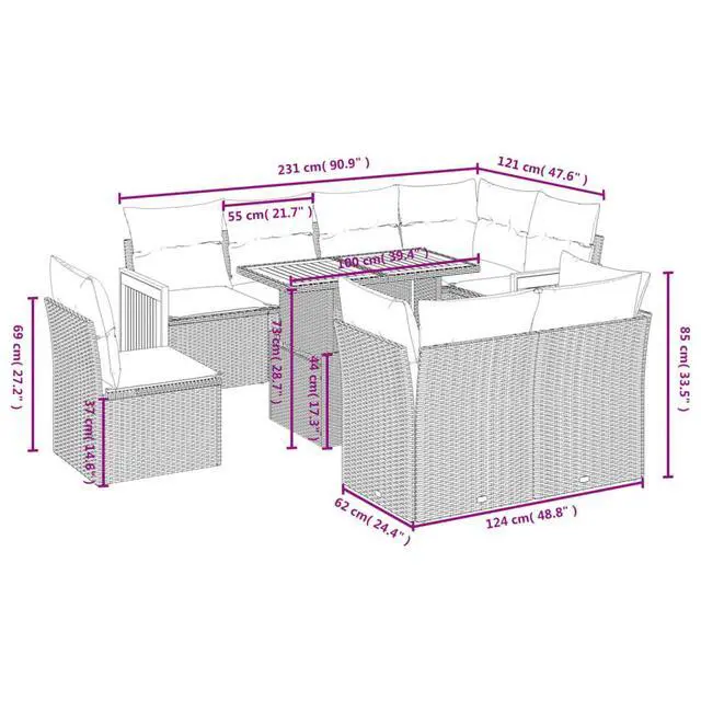 Modular design: This outdoor furniture set has a modular design, making it completely flexible and easy to move around, so you can create a customized outdoor furniture arrangement.