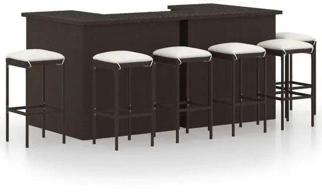 This 8-Piece Garden Bar Set gives you a classy outdoor dining experience, comfortably seating up to 6 people. Its stylish and modern, featuring a rectangular bar table and six cushioned stools, perfect for entertaining or enjoying meals outside.