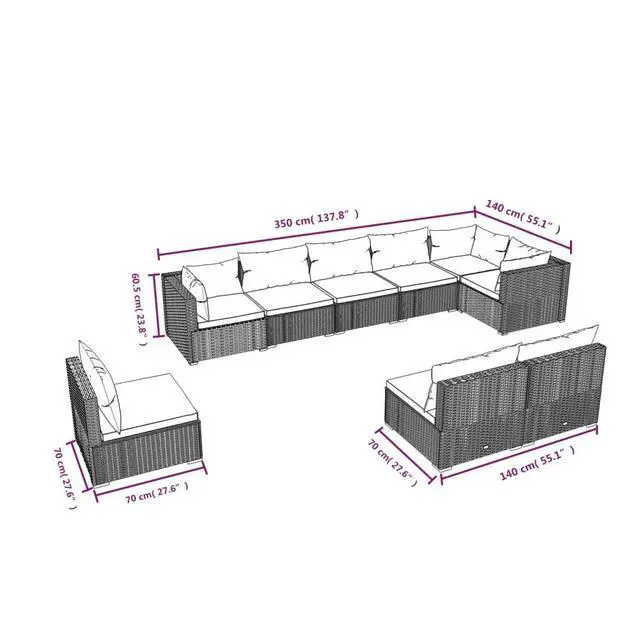 Delivery Contains: 3 x Corner sofa, 6 x Middle sofa, 9 x Seat cushion, 12 x Back pillow