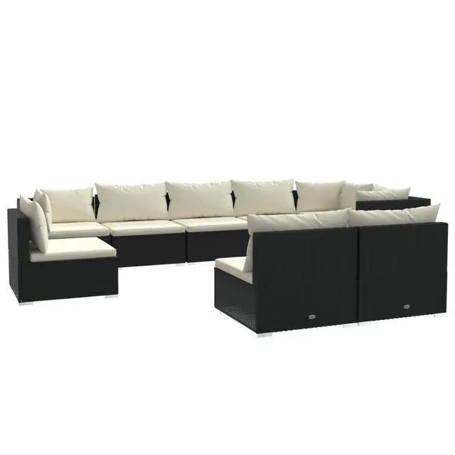 This 9-Piece Garden Lounge Set gives you a lovely mix of comfort and style, making any outdoor space feel like a relaxing getaway. With its stylish polymer rattan and sturdy powder-coated steel frame, this lounge set can handle the weather while being a great spot for family and friends to hang out, adding a touch of elegance to your balconies, patios, or gardens.