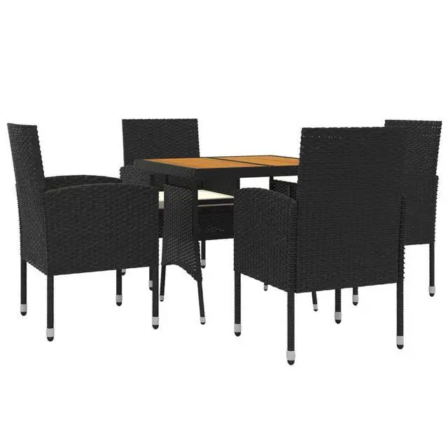 This 5-piece outdoor dining set is all about style and practicality, featuring a square table and four comfy chairs that look great and last long. Its spot on for gatherings on the terrace, patio, or garden, with a trendy black and cream design that matches any outdoor theme.