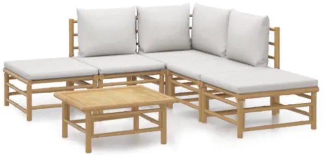 This 6-Piece Garden Lounge Set features a lovely bamboo frame that blends comfort with a modern farmhouse style. The plush light grey cushions create a welcoming vibe, perfect for sunny afternoons or cozy evenings outside. Its a great addition to your patios, gardens, or sunrooms.