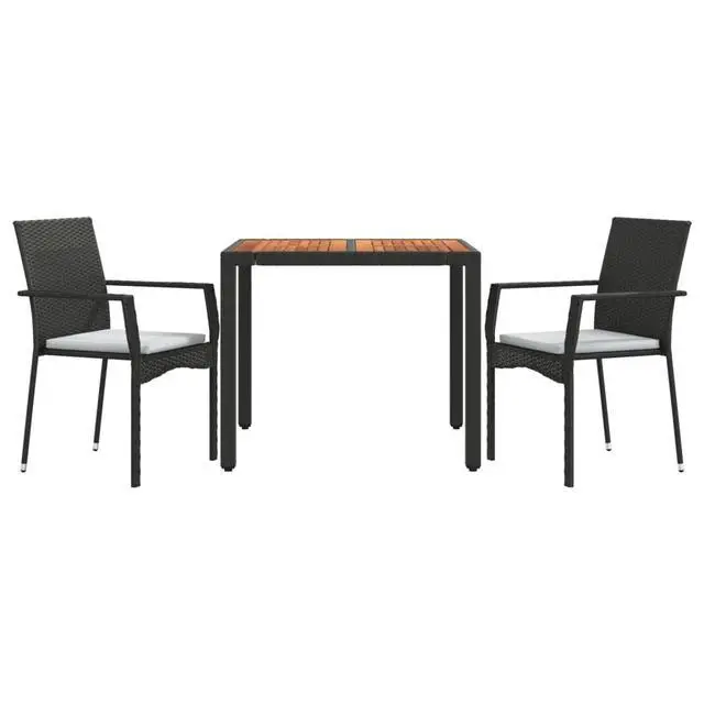 This 3 Piece Garden Dining Set offers a perfect solution for outdoor dining gatherings, giving you a mix of style and practicality. Made from weather-resistant PE rattan, the set includes a solid acacia wood table that goes well with its modern vibe, making it a lovely addition to any patio, balcony, or terrace.