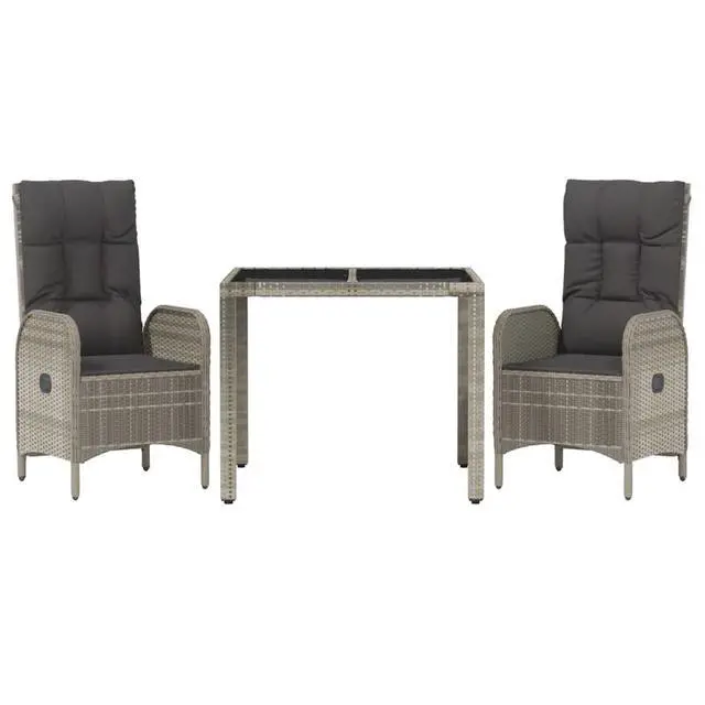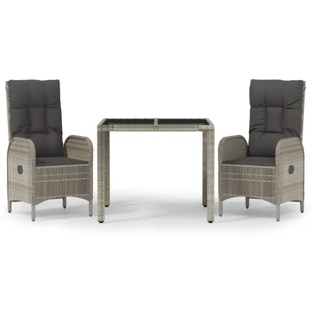 This 3 Piece Garden Dining Set is just what you need for your outdoor area, blending style and function nicely. Perfect for relaxing in your garden or on the patio, it has a contemporary look with sleek lines and grey poly rattan that fits in with different decors.