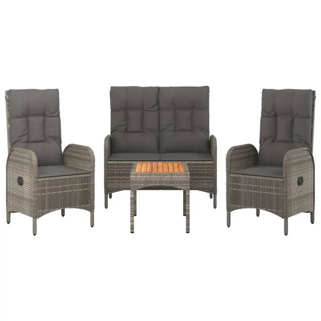 The modern design looks brilliant outdoors, making it a welcoming piece for your balcony or patio. The mix of grey poly rattan and solid acacia wood creates a lovely, natural vibe.
