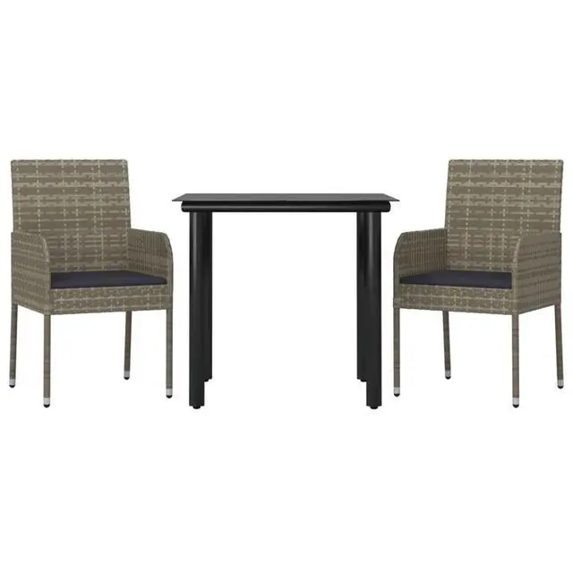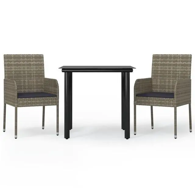 This 3-Piece Garden Dining Set offers a perfect mix of function and style for outdoor dining. Its compact, making it just right for balconies, patios, or gardens, while the sleek black and grey design brings a modern touch, enhancing any outdoor place with elegance and practicality.
