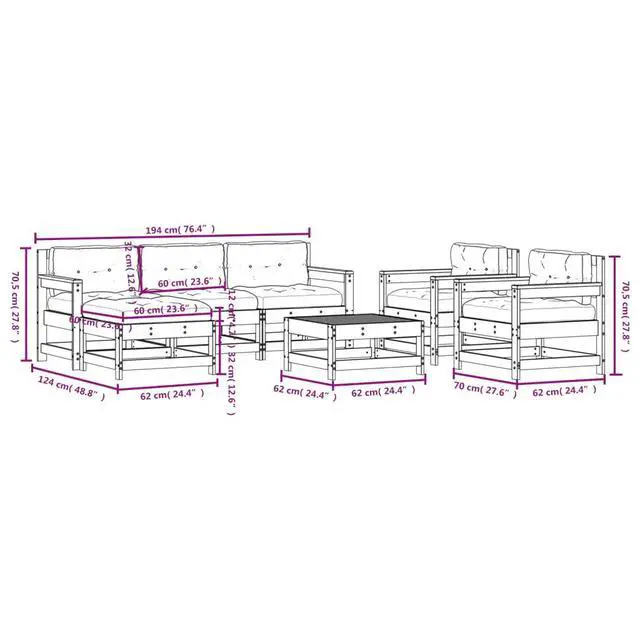 Delivery Contains: 1 x Middle sofa, 4 x Garden chair, 2 x Garden footstool/coffee table, 7 x Seat cushion, 5 x Back cushion