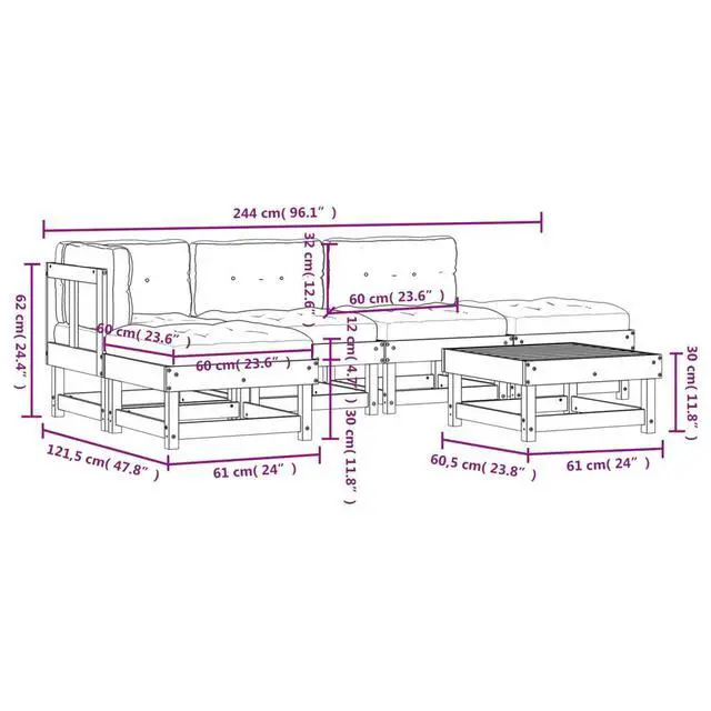 This 6-piece garden lounge set turns any outdoor area into a comfy spot for chilling out. Made from solid pine wood, it combines rustic charm with a practical modular setup that fits any setting, whether its sunny on the patio or quiet in the garden.