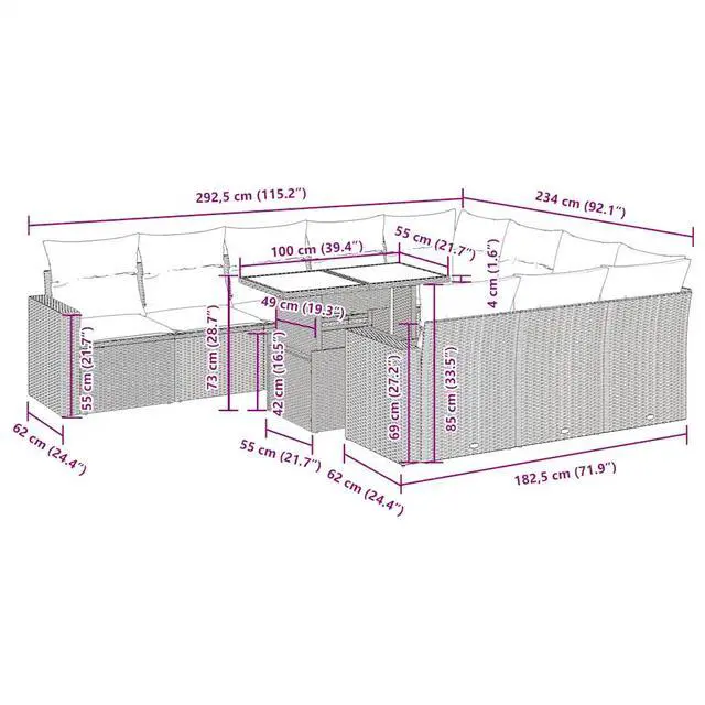 Modular design: This outdoor furniture set has a modular design, making it completely flexible and easy to move around, so you can create a customized outdoor furniture arrangement.