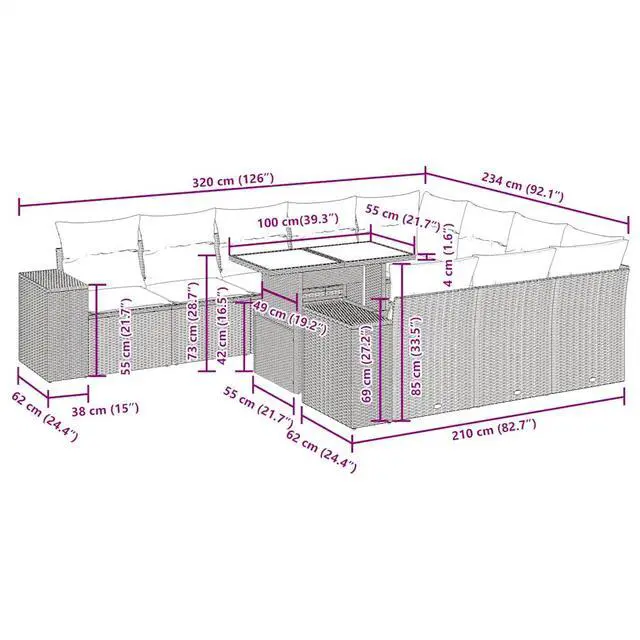 Modular design: This outdoor furniture set has a modular design, making it completely flexible and easy to move around, so you can create a customized outdoor furniture arrangement.