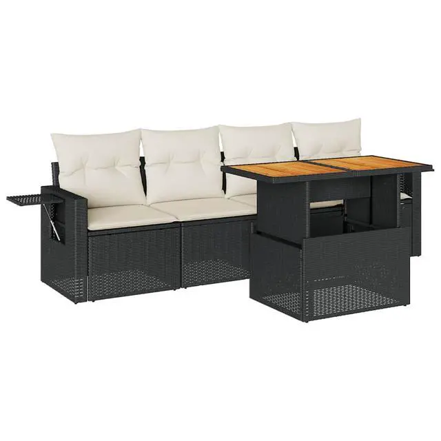 This 5-Piece Garden Sofa Set is a stylish outdoor seating option that blends functionality with elegance. With its modern design featuring smooth lines and weatherproof materials, this adaptable set is just right for chilling and socializing on a patio, balcony, or in a backyard, creating a friendly vibe for family get-togethers or cozy chats.