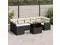 Delivery Contains: 1 x Garden table, 2 x Corner seat with storage function and water-resistant bag, 2 x Corner seat with rattan armrest and storage function with water-resistant bag, 3 x Center seat with storage function and water-resistant bag, 9 x Back cushion, 7 x Seat cushion with removable and washable cover