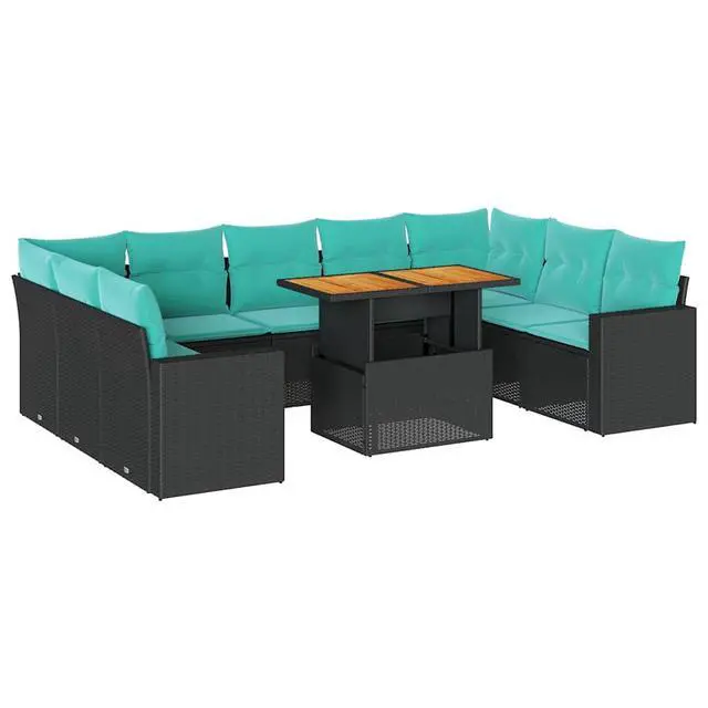 Material: PE rattan, powder-coated steel, solid acacia wood with an oil finish