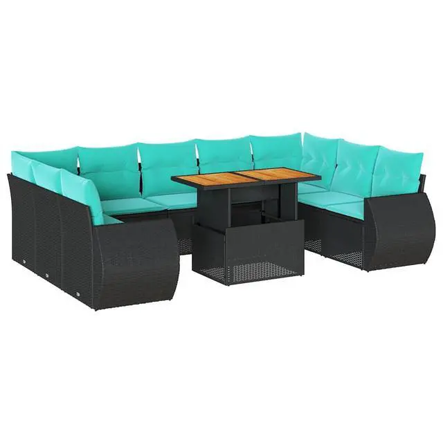 Material: PE rattan, powder-coated steel, solid acacia wood with an oil finish