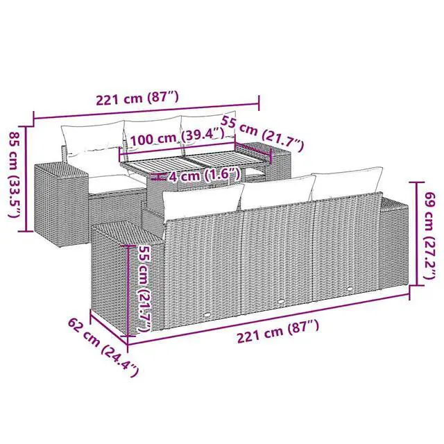 Spacious Design: Made to seat up to 7 people, this garden set is ideal for big family gatherings or a BBQ, making sure everyone has a comfy spot to chill.