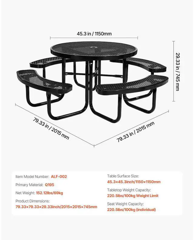 Table Surface Size: 45.3 x 45.3 in / 1150 x 1150 mm