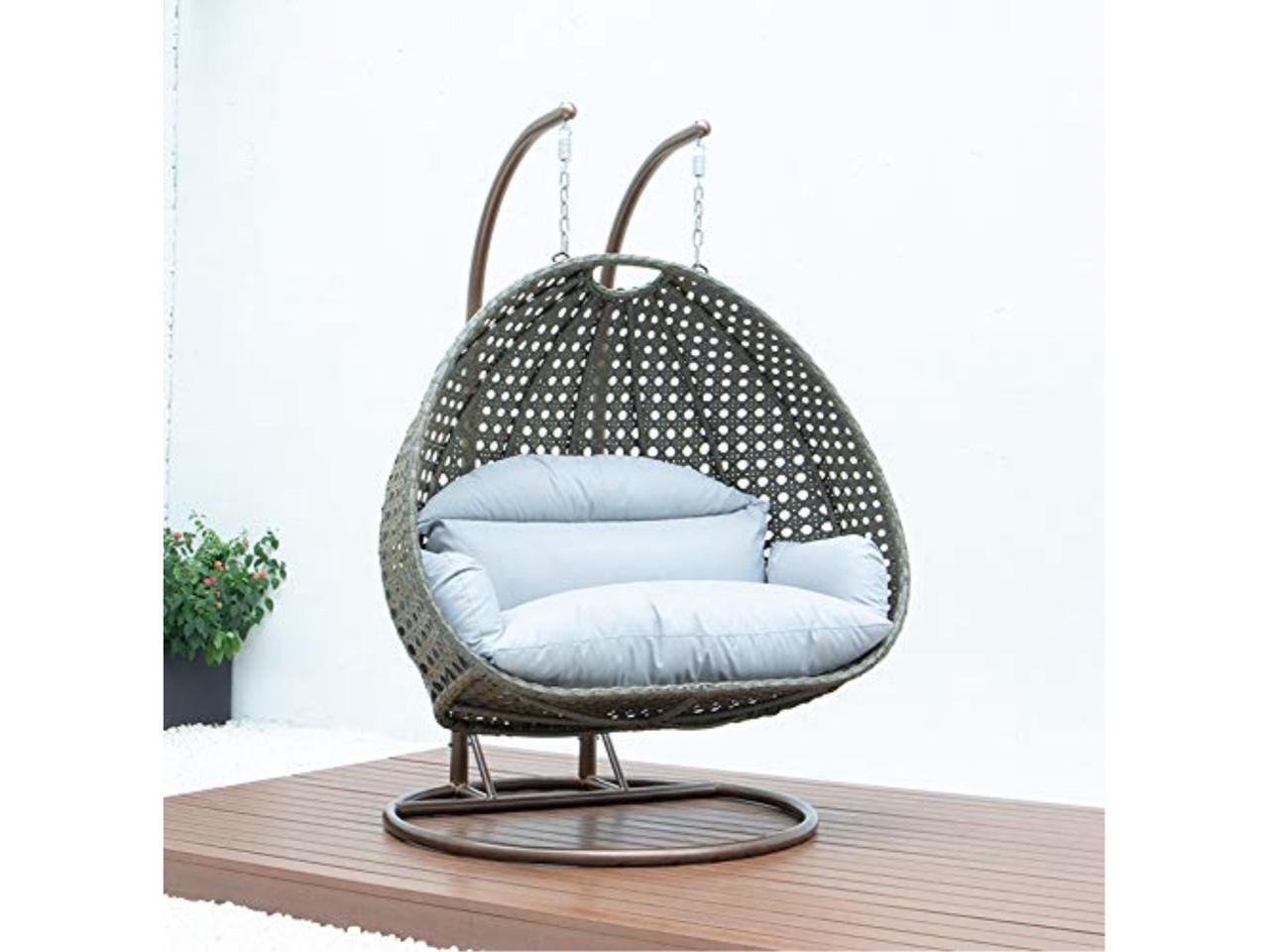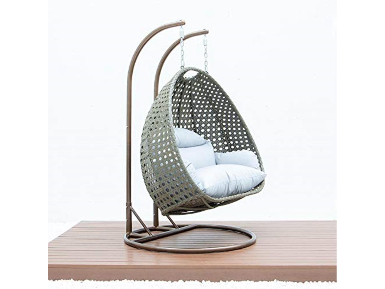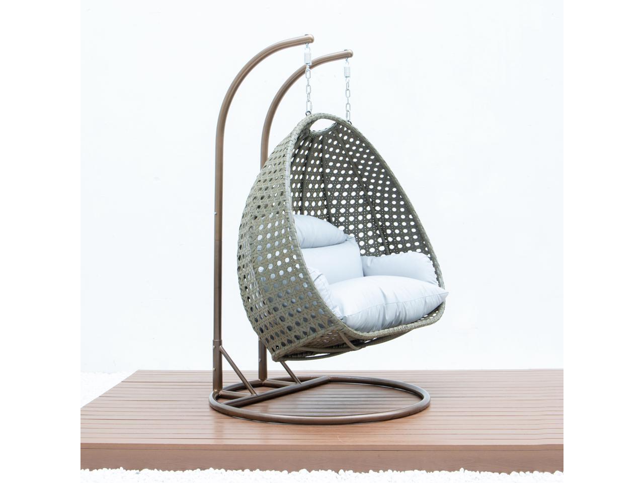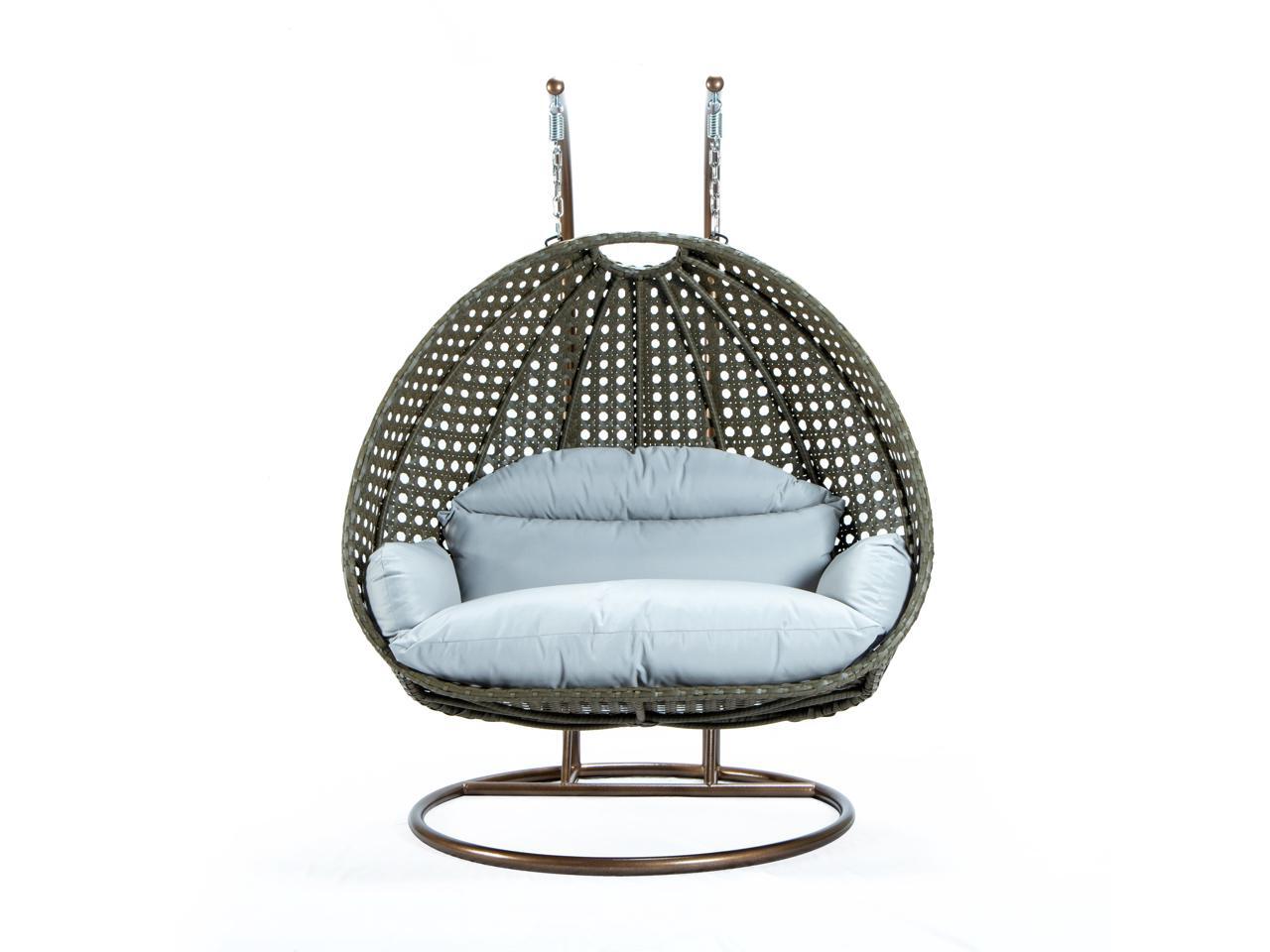 LeisureMod Beige Wicker 2 person Double Hanging Egg Swing Chair in Light Grey