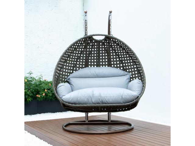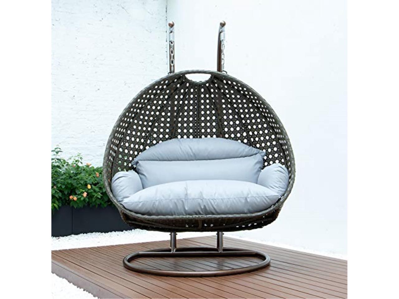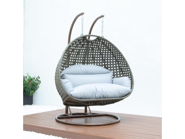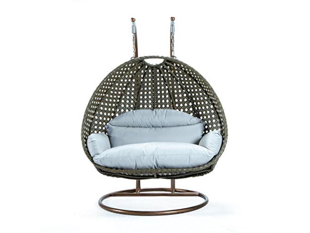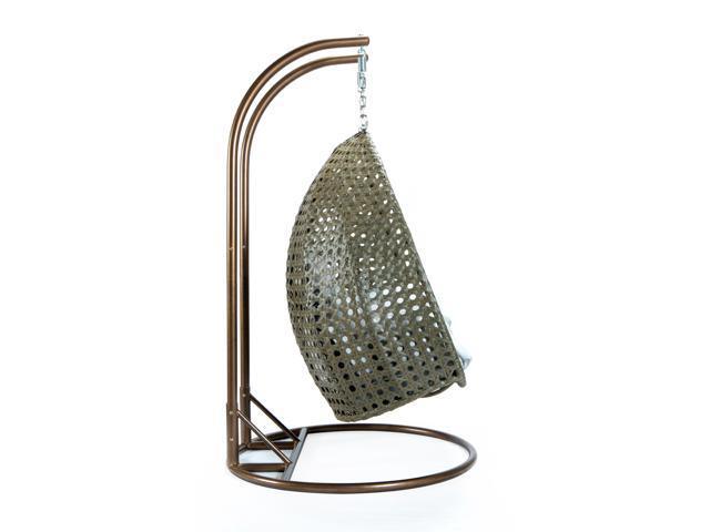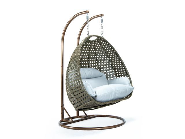 LeisureMod Beige Wicker 2 person Double Hanging Egg Swing Chair in Light Grey